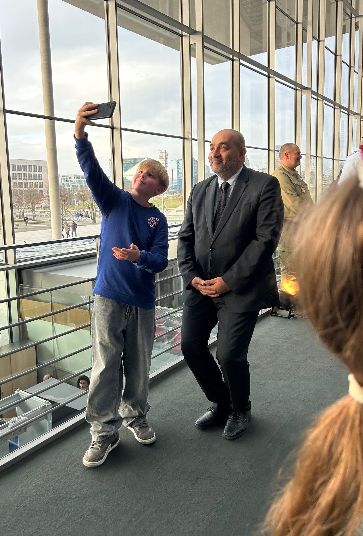 Nach der Übergabe des Weihnachtsbaums nahm sich der stellvertretende Präsident des Deutschen Bundestages, Omid Nouripour (Bündnis 90/Die Grünen), noch Zeit für Gespräche mit den Kindern und für Selfies. „War das ein aufregender Tag", resümiert Hannah. „Wir haben so viel Neues erfahren, haben eine Führung durch den Bundestag erlebt und durften die Reichstagskuppel besuchen. Einfach klasse", so die Sechstklässlerin.