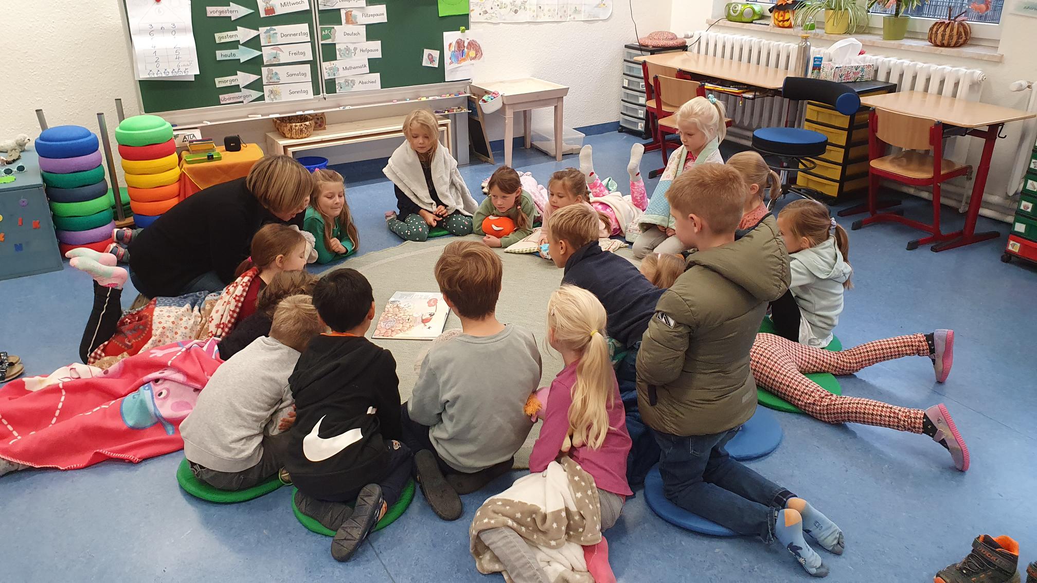 Am 18. November fanden aus Anlass des bundesweiten Vorlesetages zwei Unterrichtsstunden in besonderer Form statt. Eltern, Großeltern und Lehrkräfte lasen in allen vorhandenen großen und kleinen Räumen der Grundschule aus ihren Büchern vor.